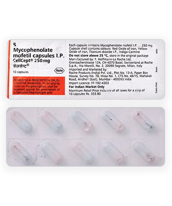 CellCept medication is used to suppress the immune system of the organism after transplantation of inner organs.